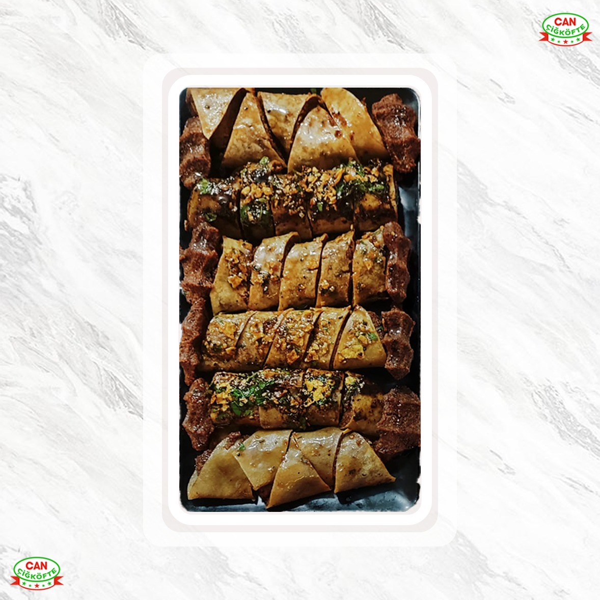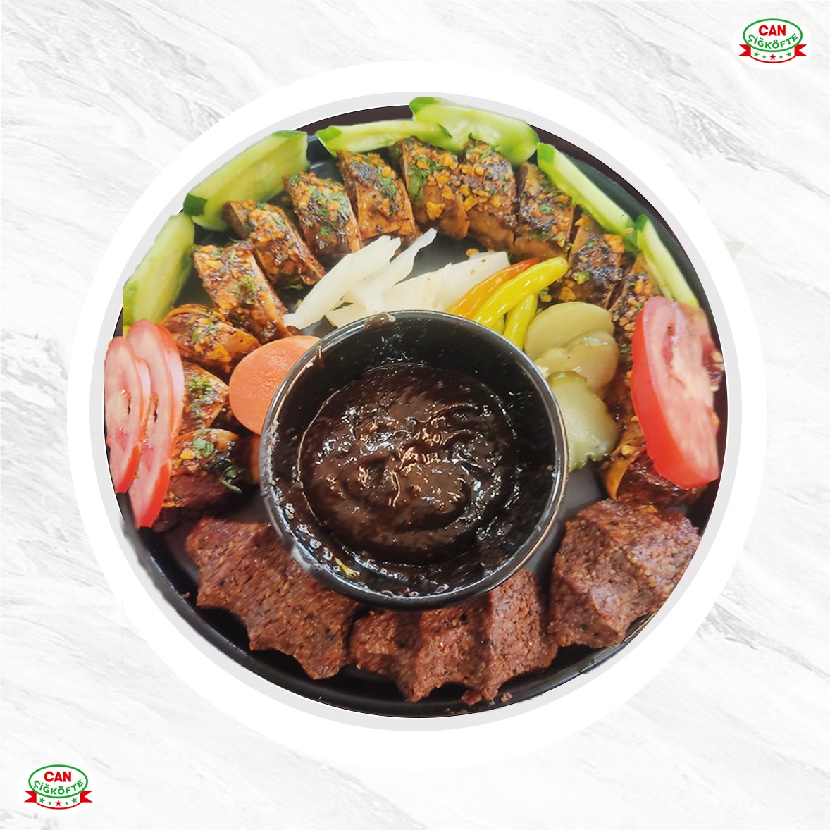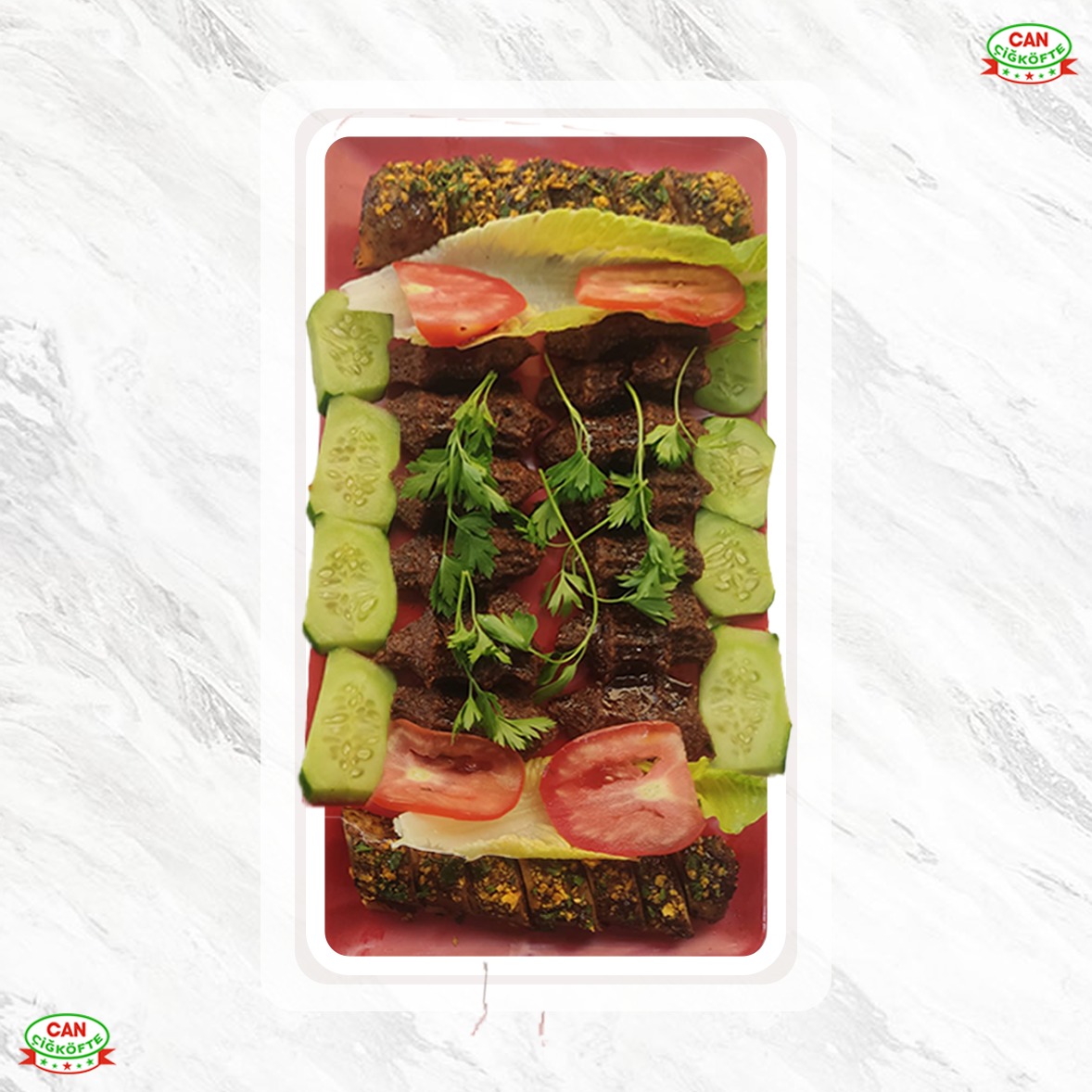 Bol yeşillikli, bol maydanozlu, doritoslu, cevizli, fındıklı, antep fıstıklı ve ultra acı çiğköfte çeşitlerimiz mevcuttur. Dilediğiniz çeşidimizi baklava ve sosis dilimi seçeneklerimizle porsiyon olarak ya da dürüm olarak sipariş edebilirsiniz. Karar vermekte zorlananlara özel içinde her çeşidimizi barındıran Sultan porsiyonumuz sizlerle! Hepinizi bekliyoruz.